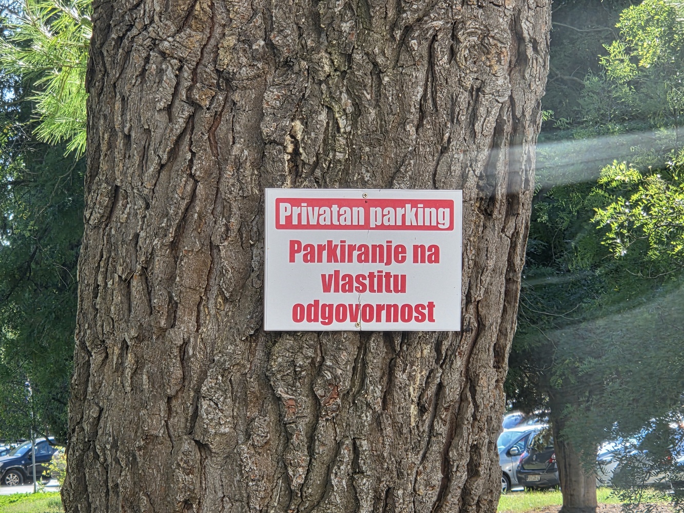 Pripitomljavanje gradskog parkinga?! Molim vas, uklonite znakove sa dva stabla.