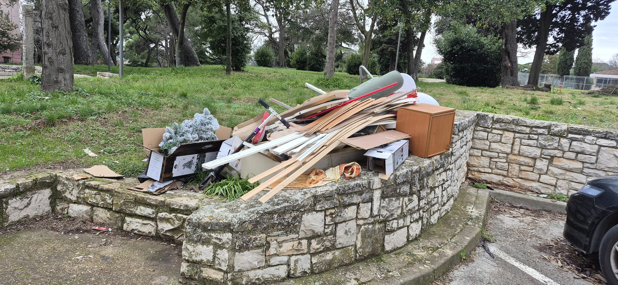 Glomazni otpad odložen je na zelenu površinu.
