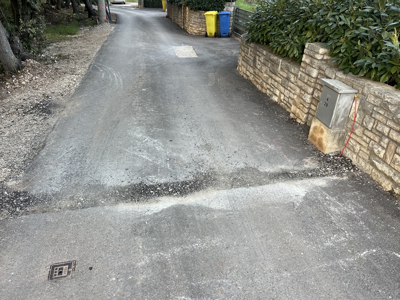 Poštovani, Obraćam vam se u vezi s problemom u ulici Bunarska cesta od broja 6 do 10. Kao što je vidljivo na slikama, nakon izvođenja radova na novo asfaltiranoj cesti za postavljanje optičkih kabela, izvođač radova nije asfaltirao sve prekope koje je napravio. Molim vas da poduzmete mjere kako bi se to odradilo i vratilo u prvobitno stanje. Hvala.