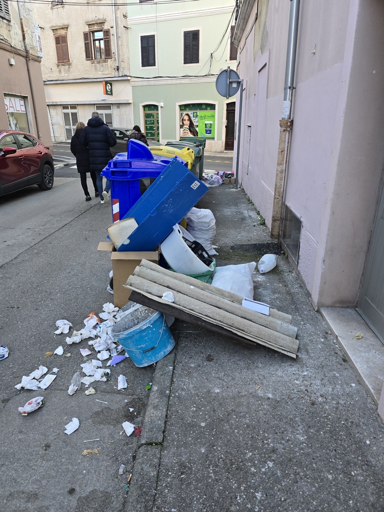 Početak Dobricheve ulice... Ovako stoji danima i neugodno miriše. Trebalo bi postaviti kamere, kao na ostalim mjestima, jer tu često bacaju otpad.