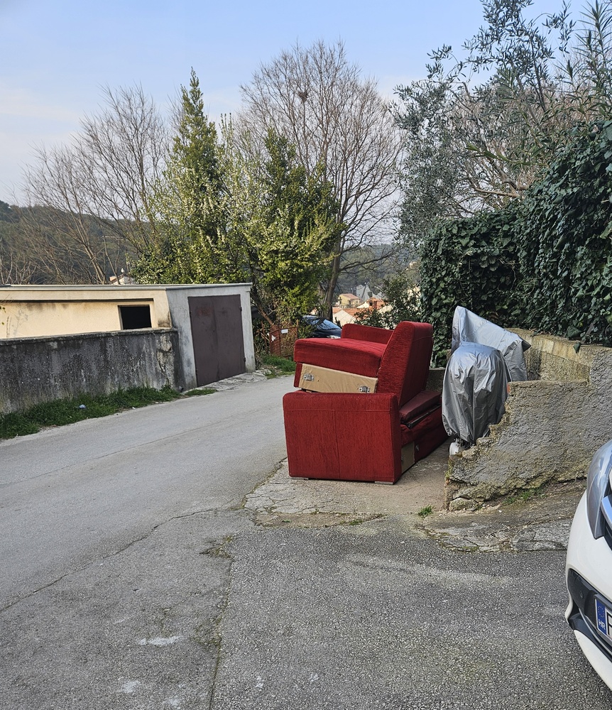Kauč, koji je nelegalno odložen, stoji već 7 dana. Komunalne službe prolaze pokraj njega, međutim, nitko ne reagira.