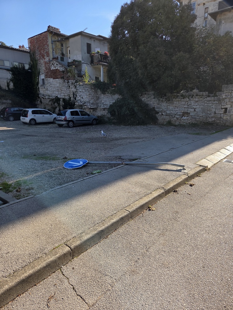 Srušen je znak na parkiralištu u ulici Gladijatorska.