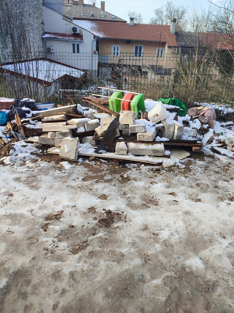 Poštovani, na parkingu kod Gundulićeve 2 sve je ovo bačeno. Dok je bio kontejner, otpad se nije bacao na pod. No, posljednjeg dana vrata kontejnera bila su zatvorena, i sav je ovaj otpad istresen na tlo. Prije otprilike 20 dana bio je tu čovjek u automobilu koji je nešto zapisivao u vezi s tim otpadom, vjerojatno komunalni redar, ali još uvijek nije uklonjen. I dalje se na ovu gomilu dovozi i baca svakakvo smeće. Molim vas da ovo uklonite i postavite znak zabrane bacanja otpada ili pronađete drugo rješenje, jer će osobe bez obzira i kulture napraviti divlju deponiju. Zahvaljujem.
