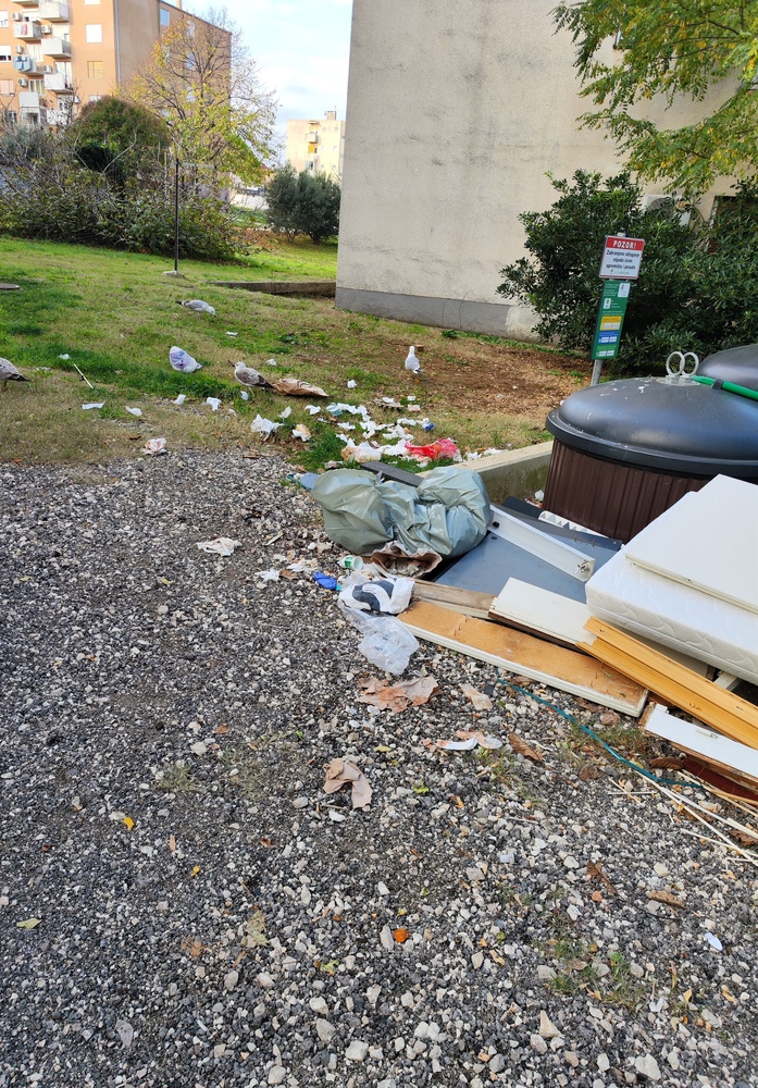 Smeće je izvan spremnika rasuto duž cijele ulice.