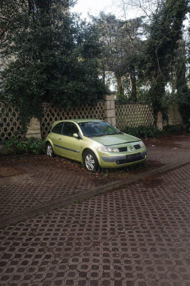 Već dugo napušten automobil nalazi se na parkiralištu mornaričkog kampusa bivše bolnice, zauzimajući mjesto drugim automobilima.