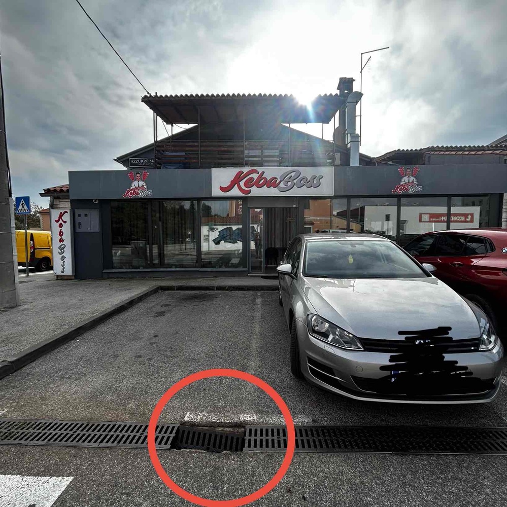 PALADIOVA ULICA na Verudi: oštećeni (otvoreni) dio odvodnog kanala uz parkirna mjesta - netko bi se mogao ozlijediti prilikom hodanja. Molim vas da to sanirate što prije. Hvala.