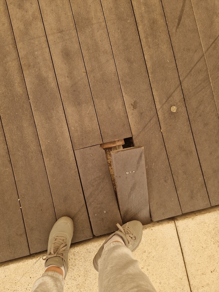 Molim da se pregleda odvidana daska na Trgu kralja Tomislava. Jutros sam se skoro potpuno ozlijedila. Starija osoba bi se sigurno ozlijedila. Lokacija je odmah iznad zelene površine, a u blizini su i klupe. Hvala.