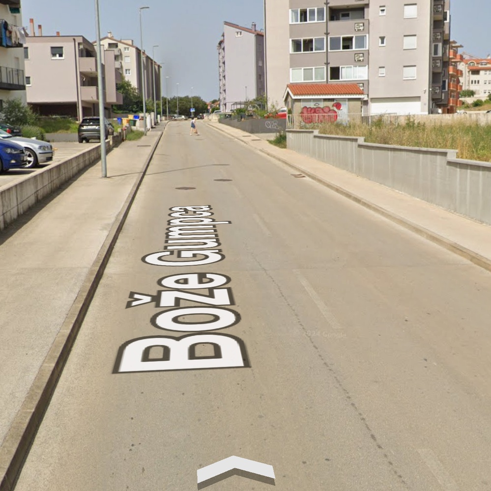 Ulica Bože Gumpca. Svaka čast na brzom obilježavanju pješačkih prijelaza, ali zašto se središnja linija ne može prebojati? Nikada nije obojana od izgradnje ove ulice. Molimo za obilježavanje SREDIŠNJE LINIJE.
