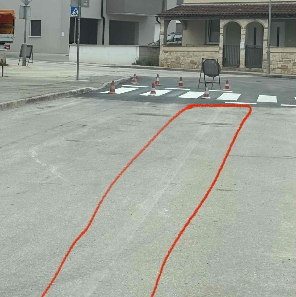 Možete li objasniti zašto se, kada se već boji, ne može obojiti i središnja crta na ovoj i okolnim prometnicama, koja je očito izblijedjela? Od izgradnje, samo su pješački prijelazi bojani, dok središnja crta nije. Kao građani smo više puta zamolili za to, ali bez uspjeha.