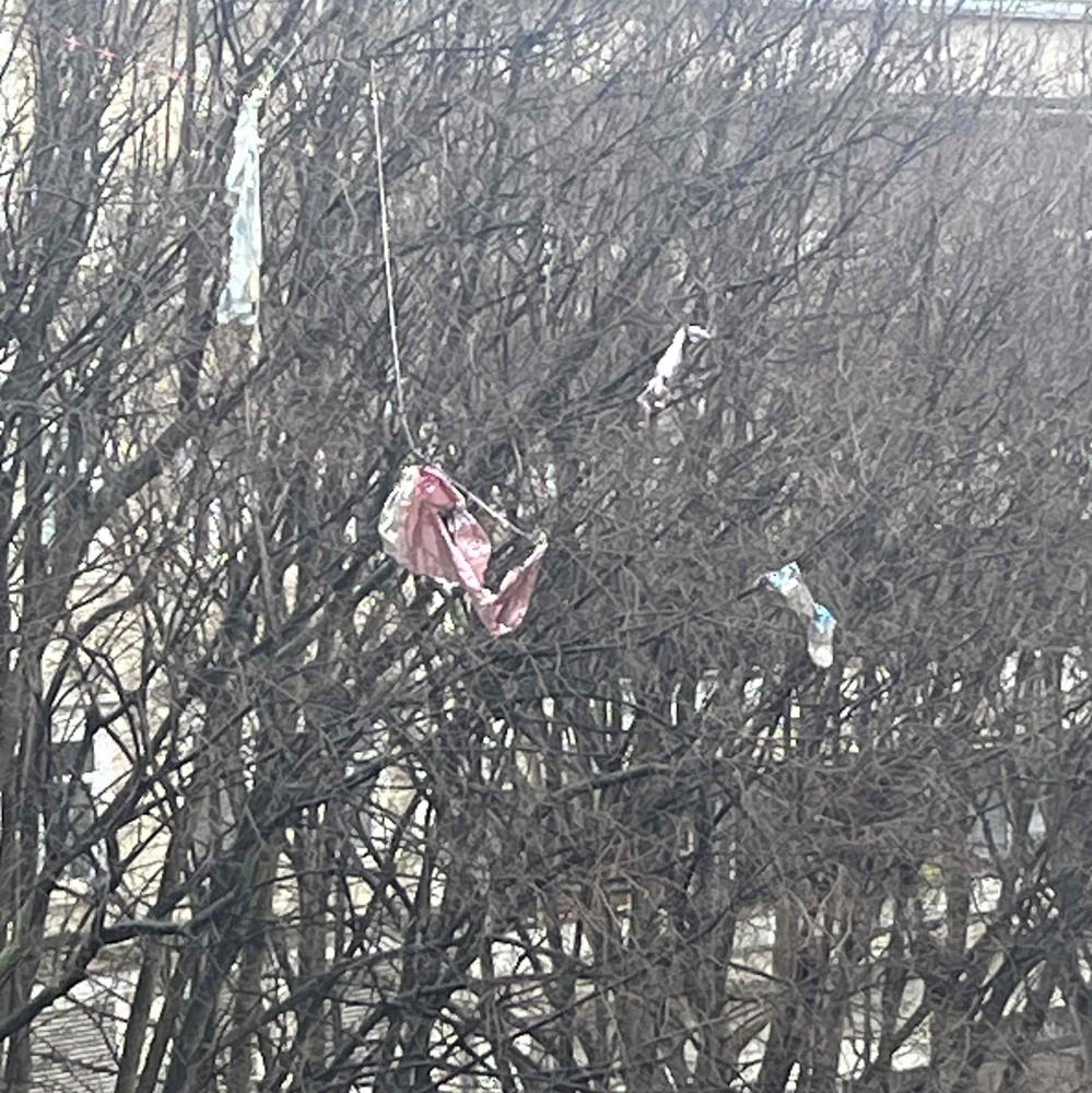 Na Giardinima, na više mjesta na stablima, visi smeće.