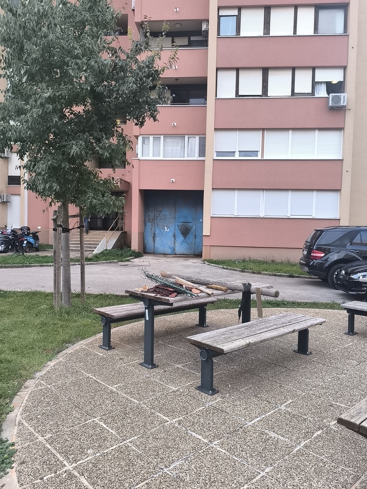 Molim da se u dječjem parku između nebodera kod Stelle pokupi smeće, opušci i ostali otpad. Pored stolova potrebno je postaviti pepeljare i upozorenje da se opušci ne bacaju unaokolo.