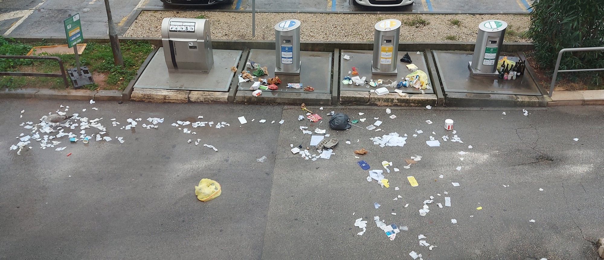 Molim da se hitno riješi problem neodgovornih stanara koji ne bacaju smeće u nove podzemne spremnike. Svaki dan imamo ovakvu situaciju gdje galebovi razbacuju smeće.