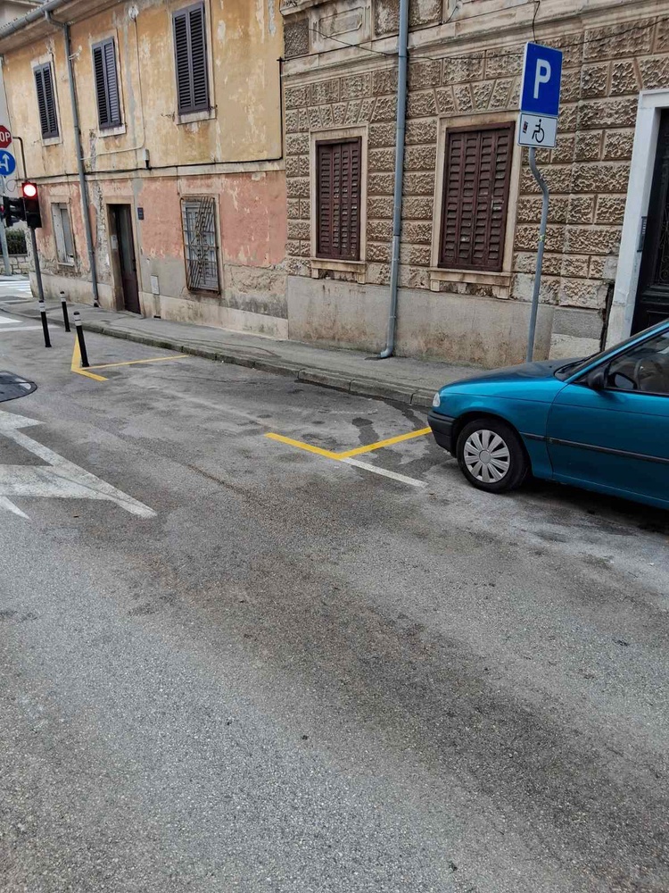Nije do kraja označeno invalidsko parkirno mjesto, pa se svi parkiraju. Molim vas da se oznaka postavi do kraja. Ulica Vukovarska, kod semafora na broju 9.