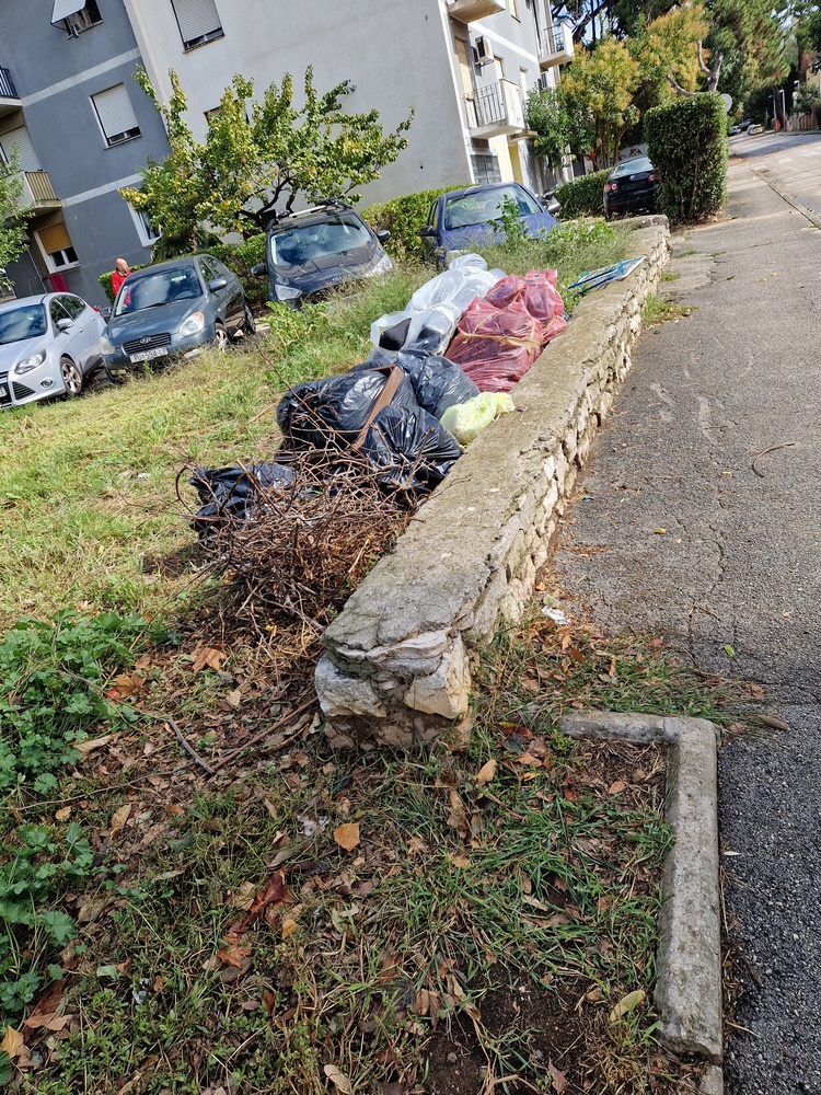 Opet je smeće na istom mjestu; stalno ga bacaju na livadu. Sram vas bilo, Zoranićeva ulica 11/13.