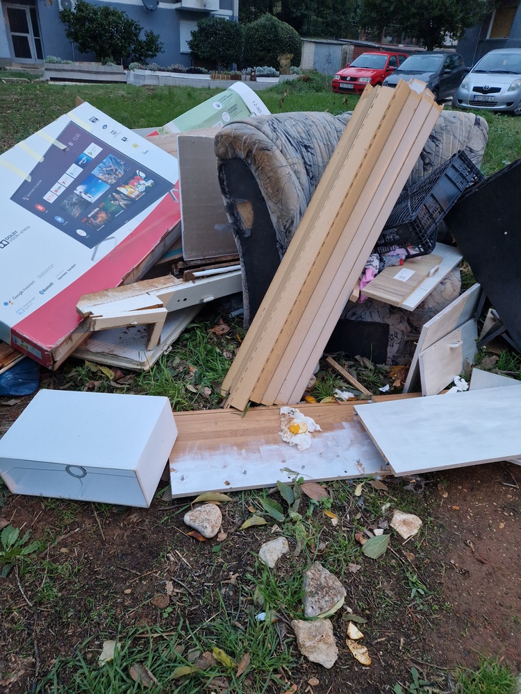 Smeće na zelenoj površini. Zoranićeva 11/13.